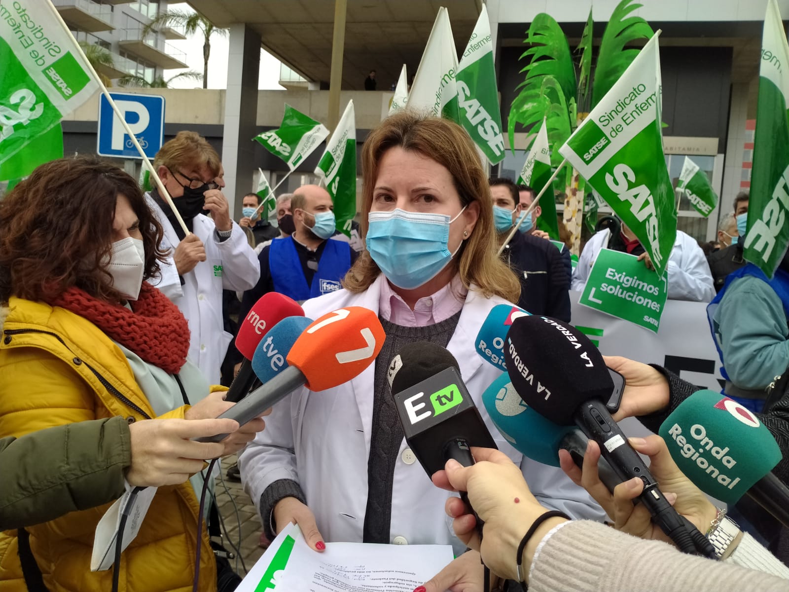Enfermeros tras la pancarta de SATSE 'Exigimos soluciones'.