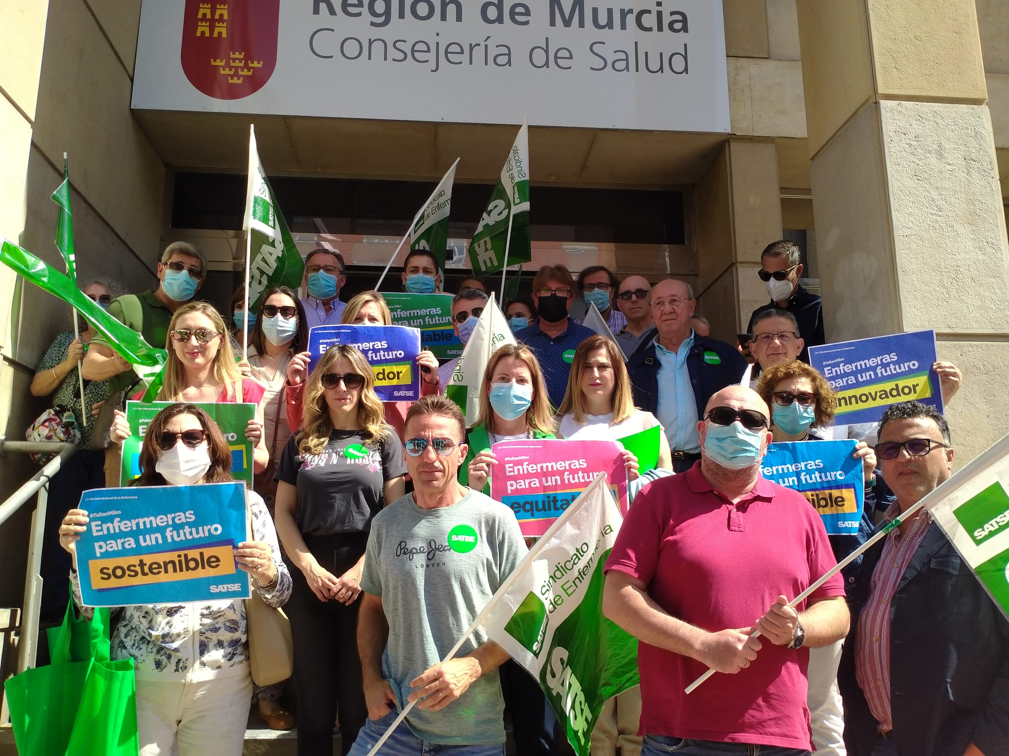 Satse se concentra y clama por su condiciones laborales y la situación de la sanidad pública murciana.