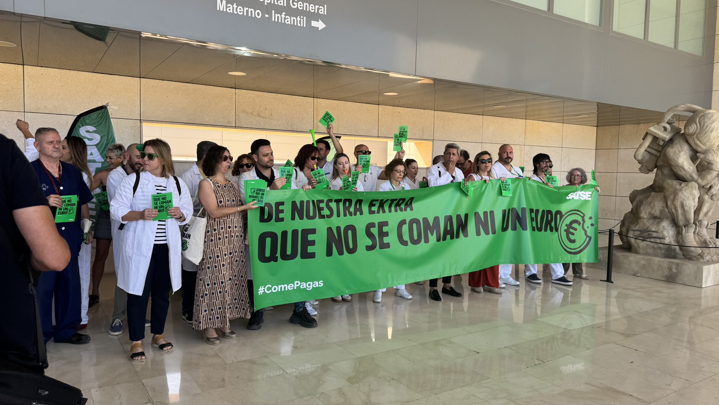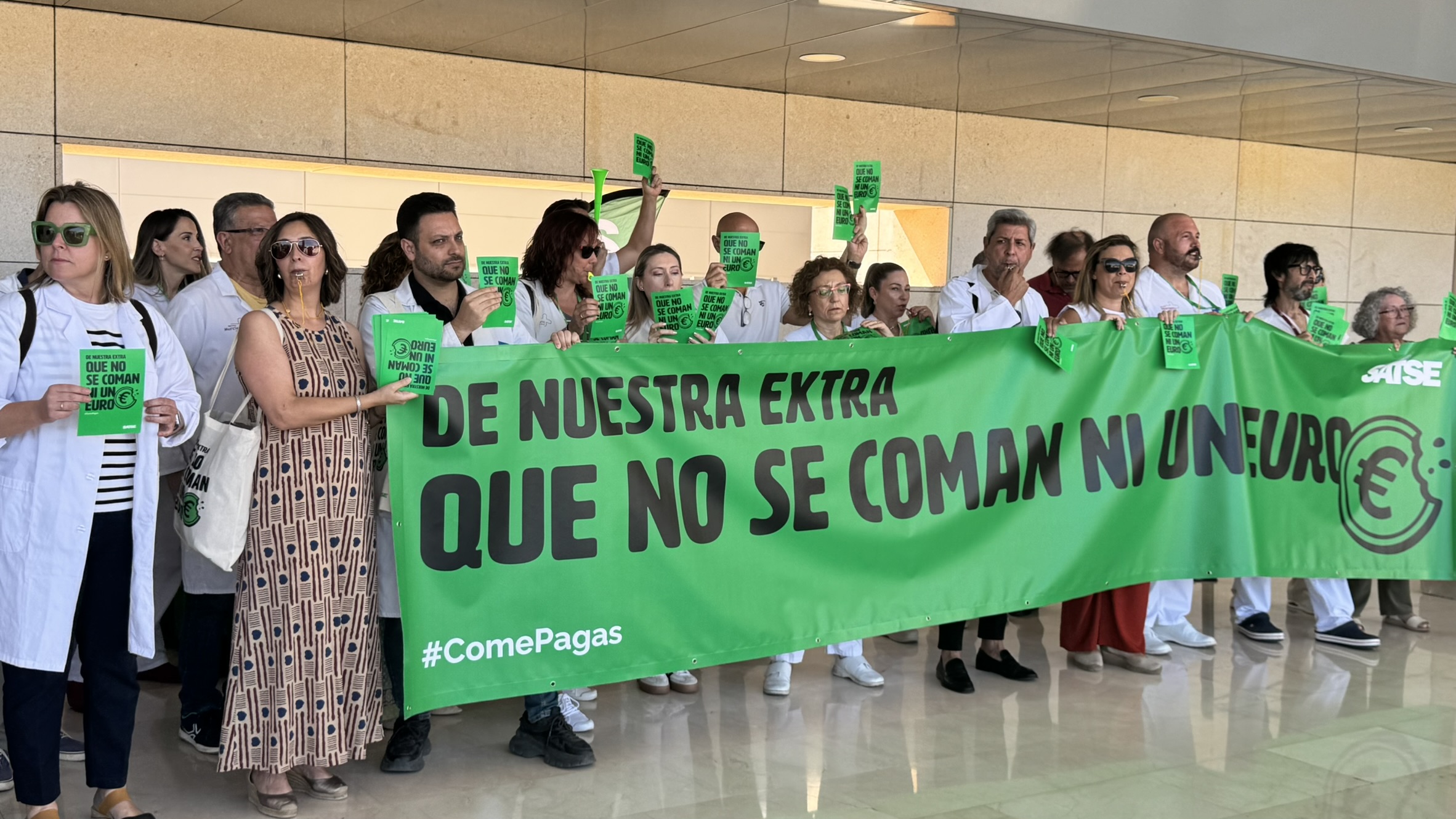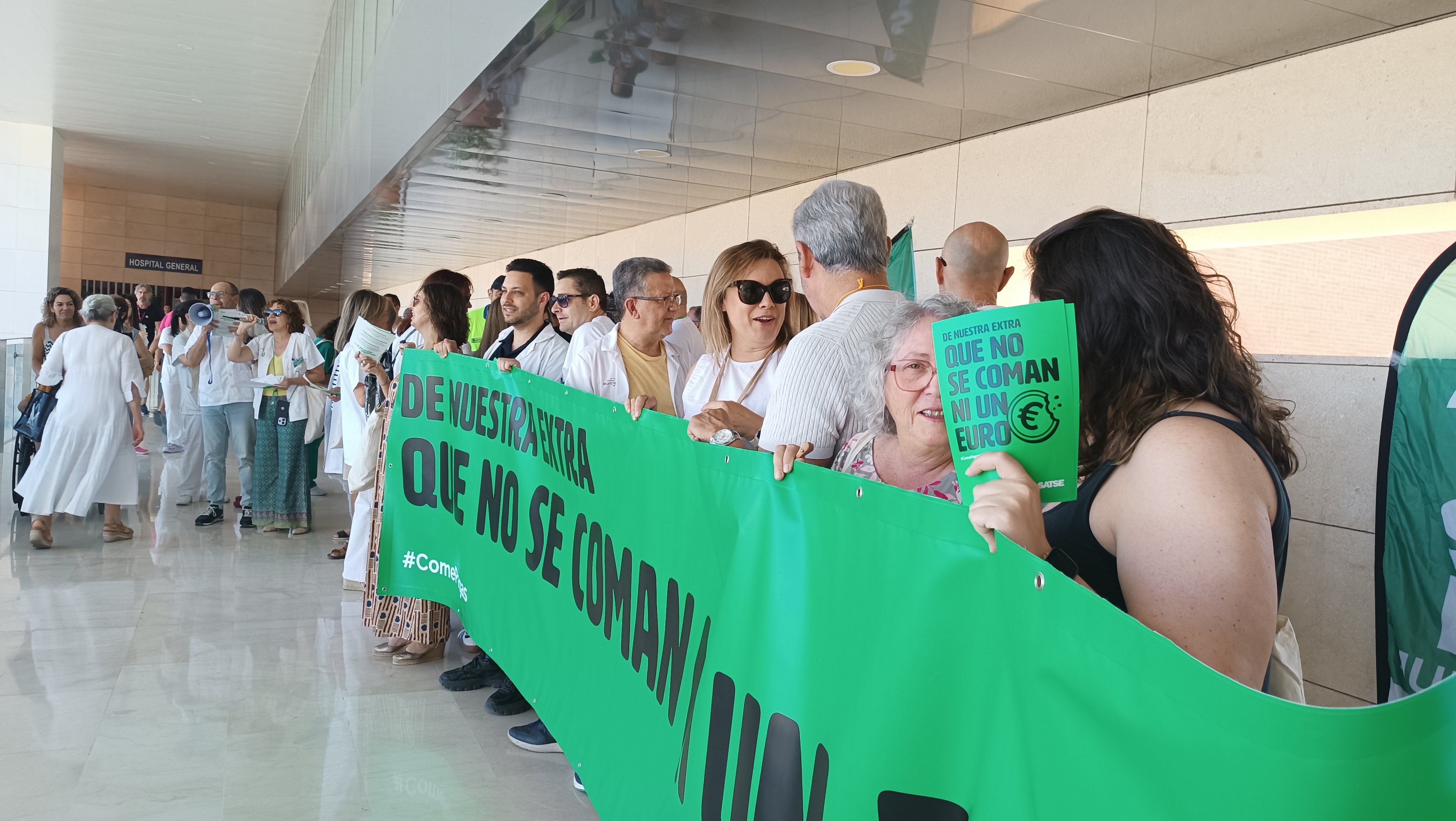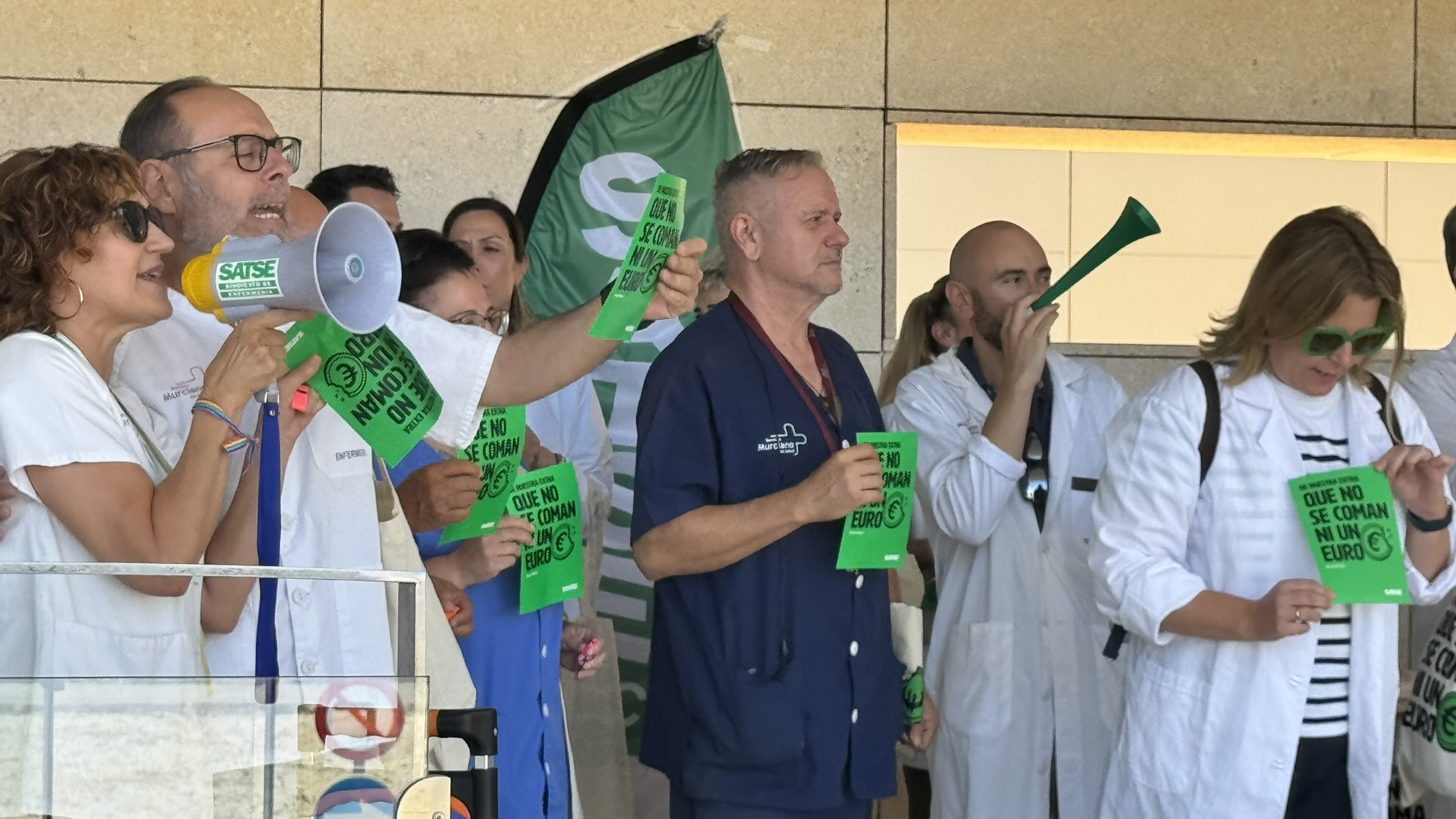Concentración a las puertas de La Arrixaca al grito de 'Que no se coman nuestra extra'.
