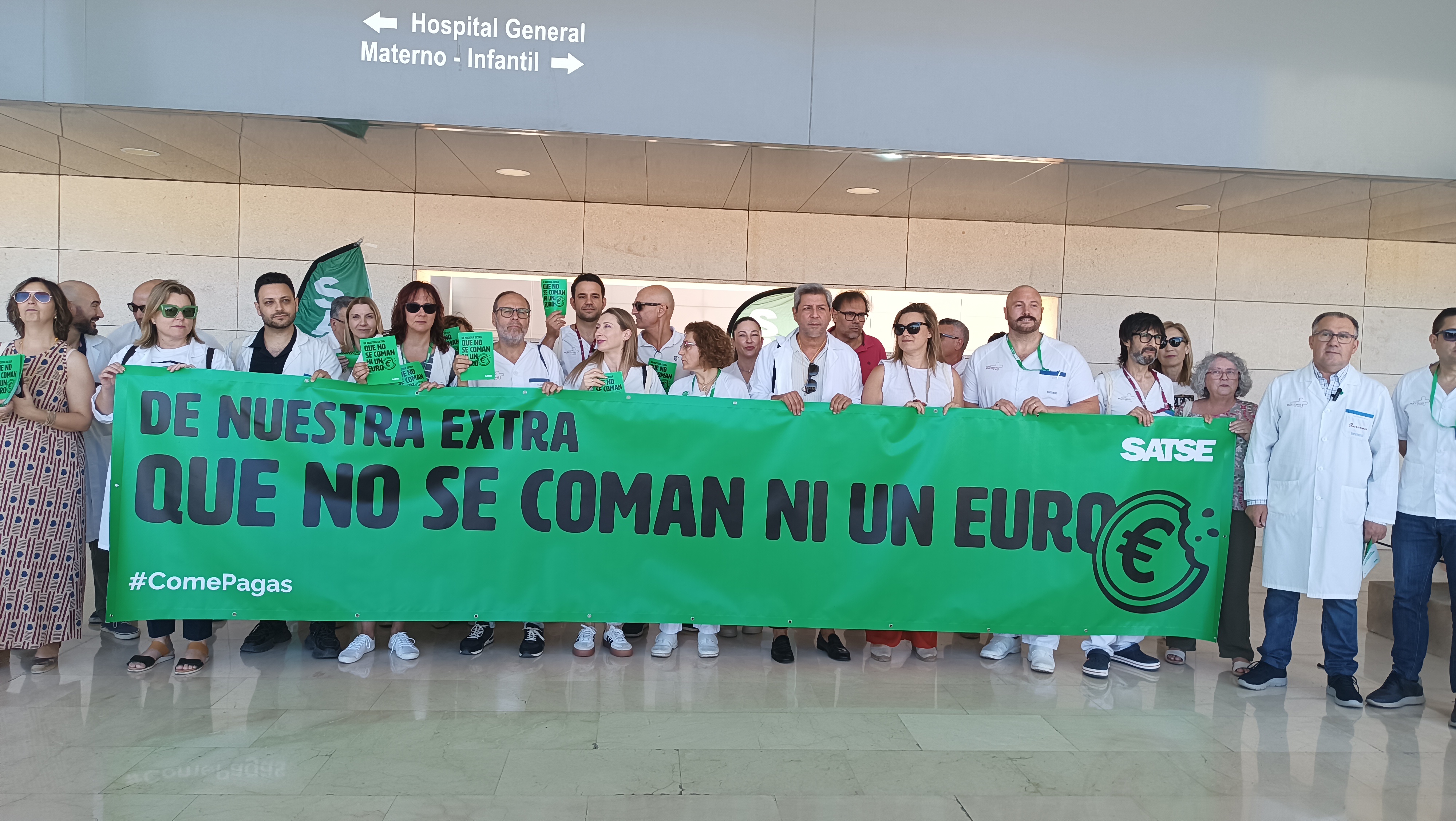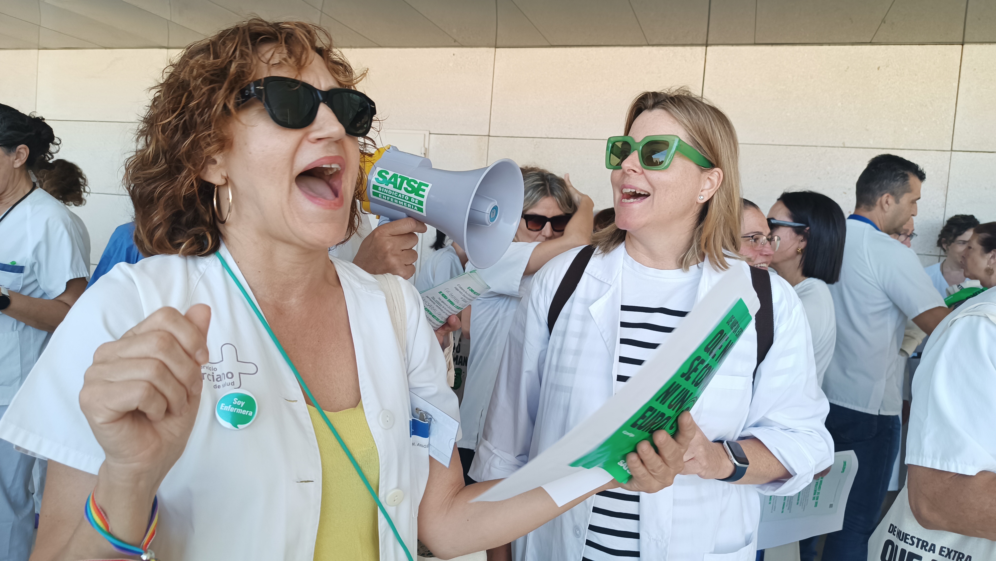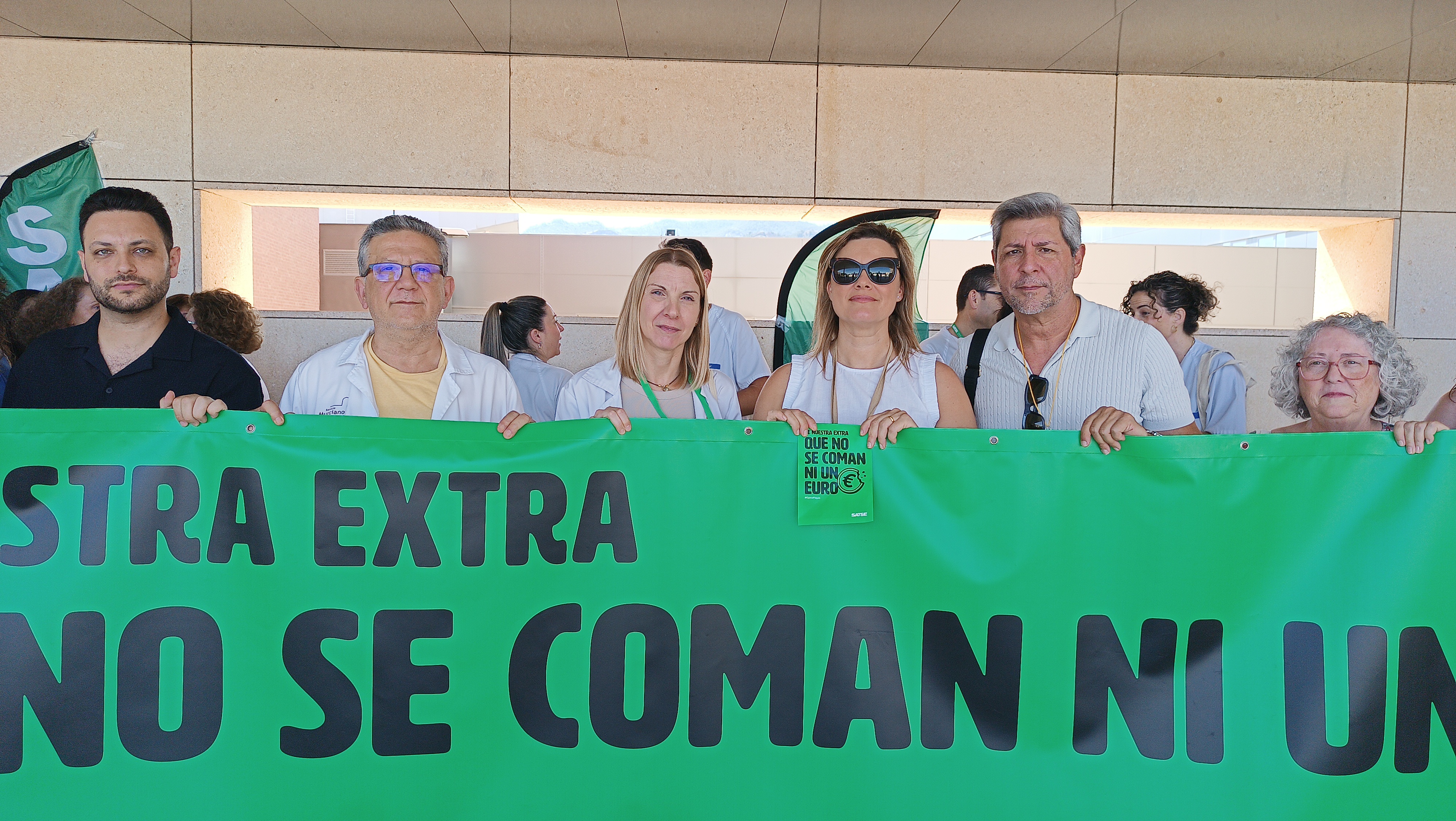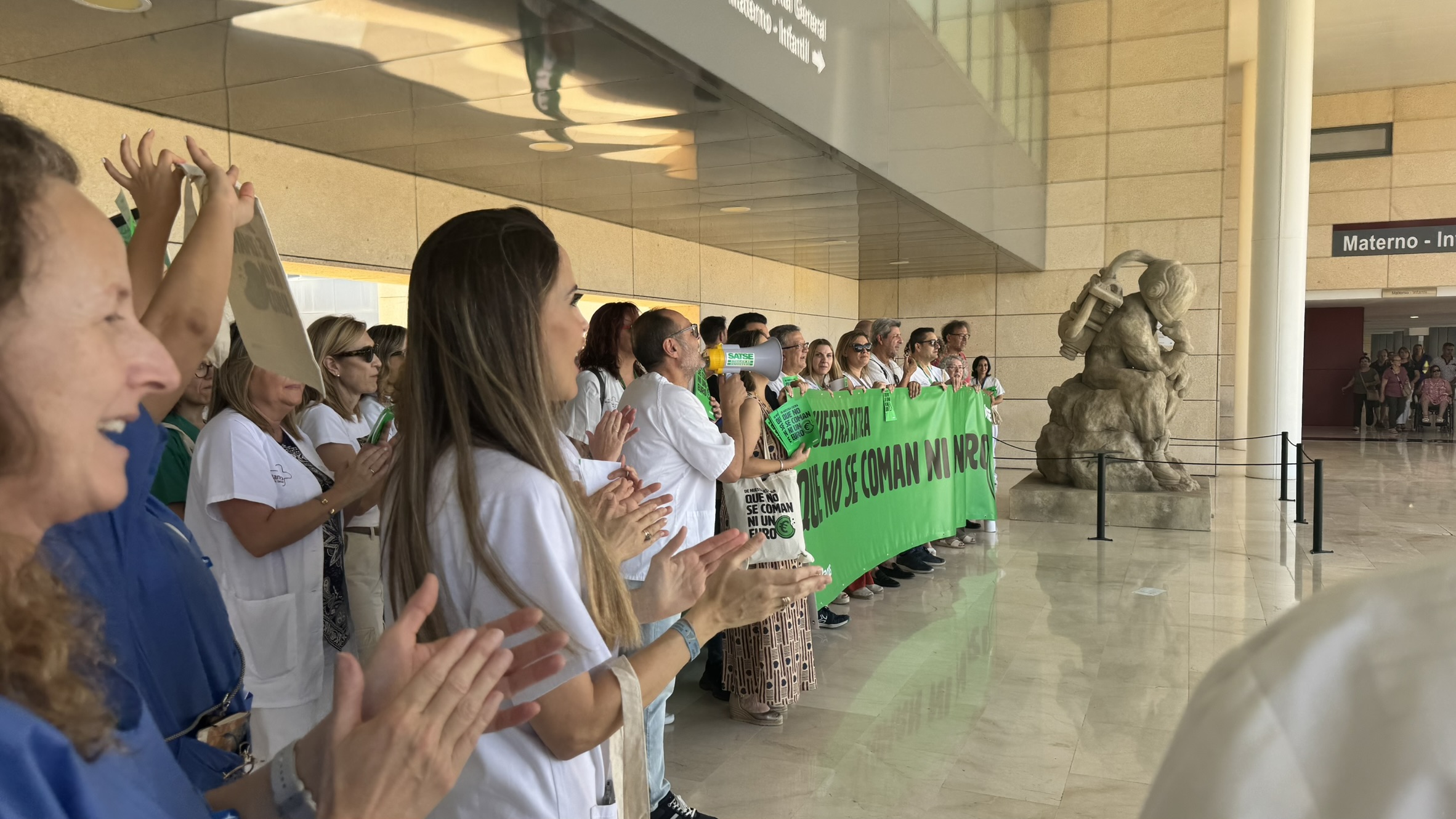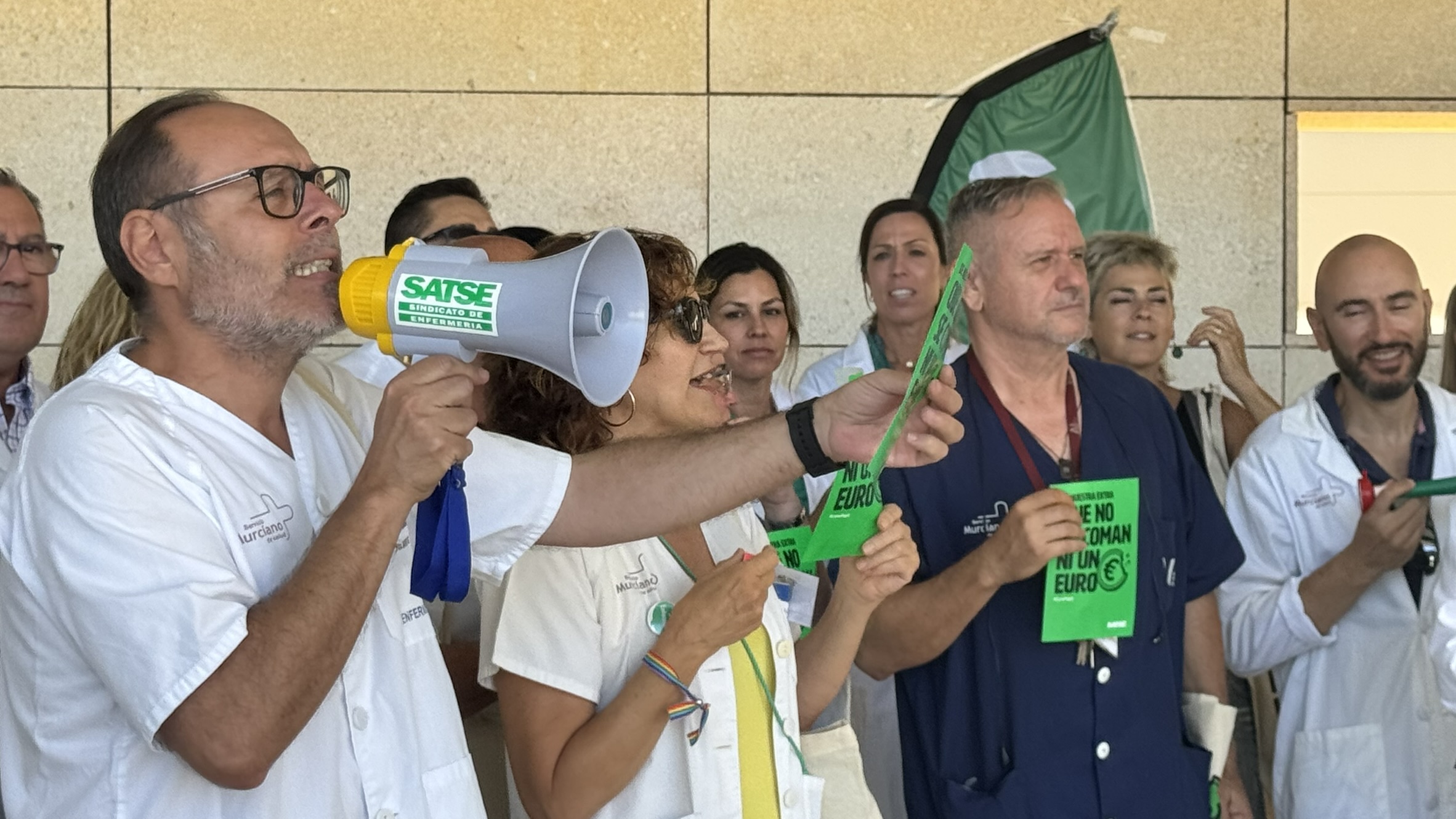 Concentración a las puertas de La Arrixaca al grito de 'Que no se coman nuestra extra'.