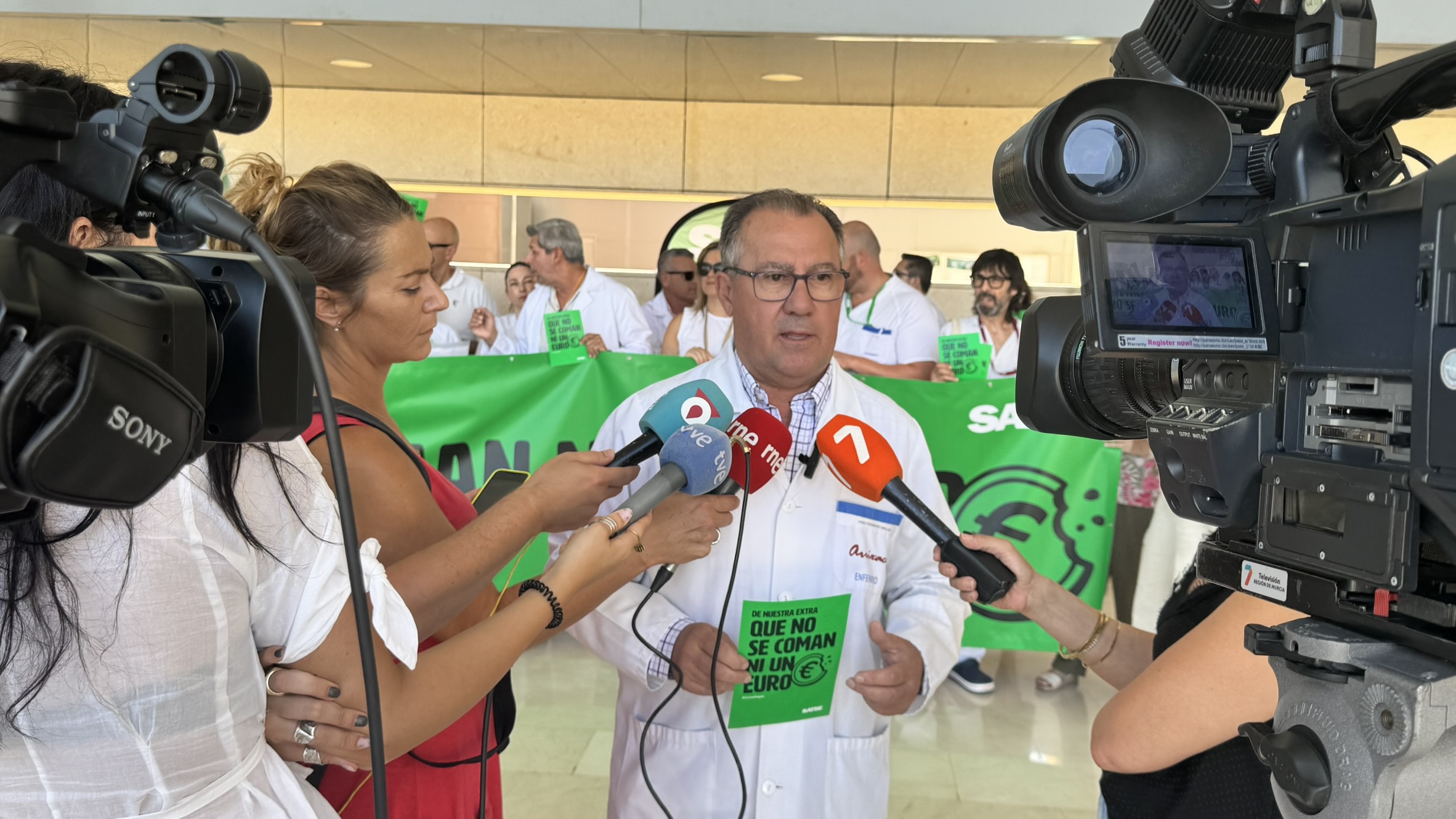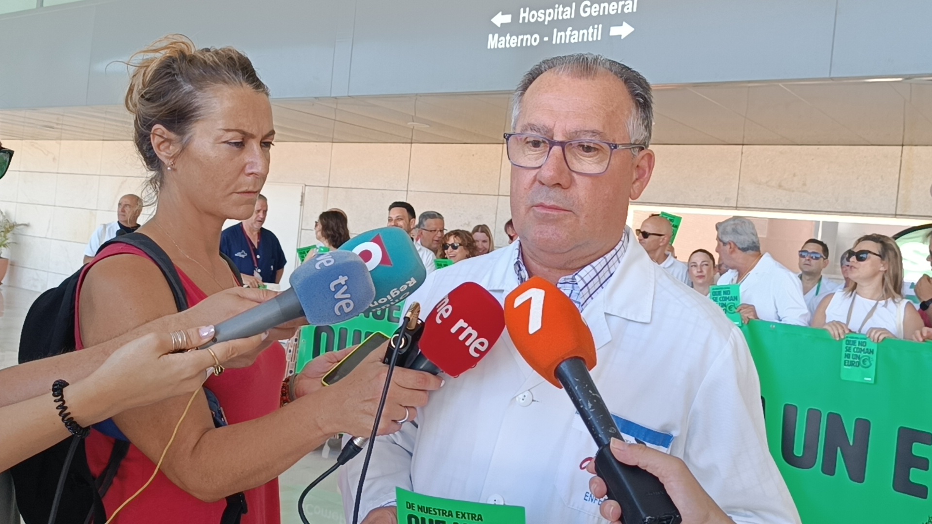 Pablo Fernández, secretario autonómico de SATSE Murcia, atendiendo a los medios.