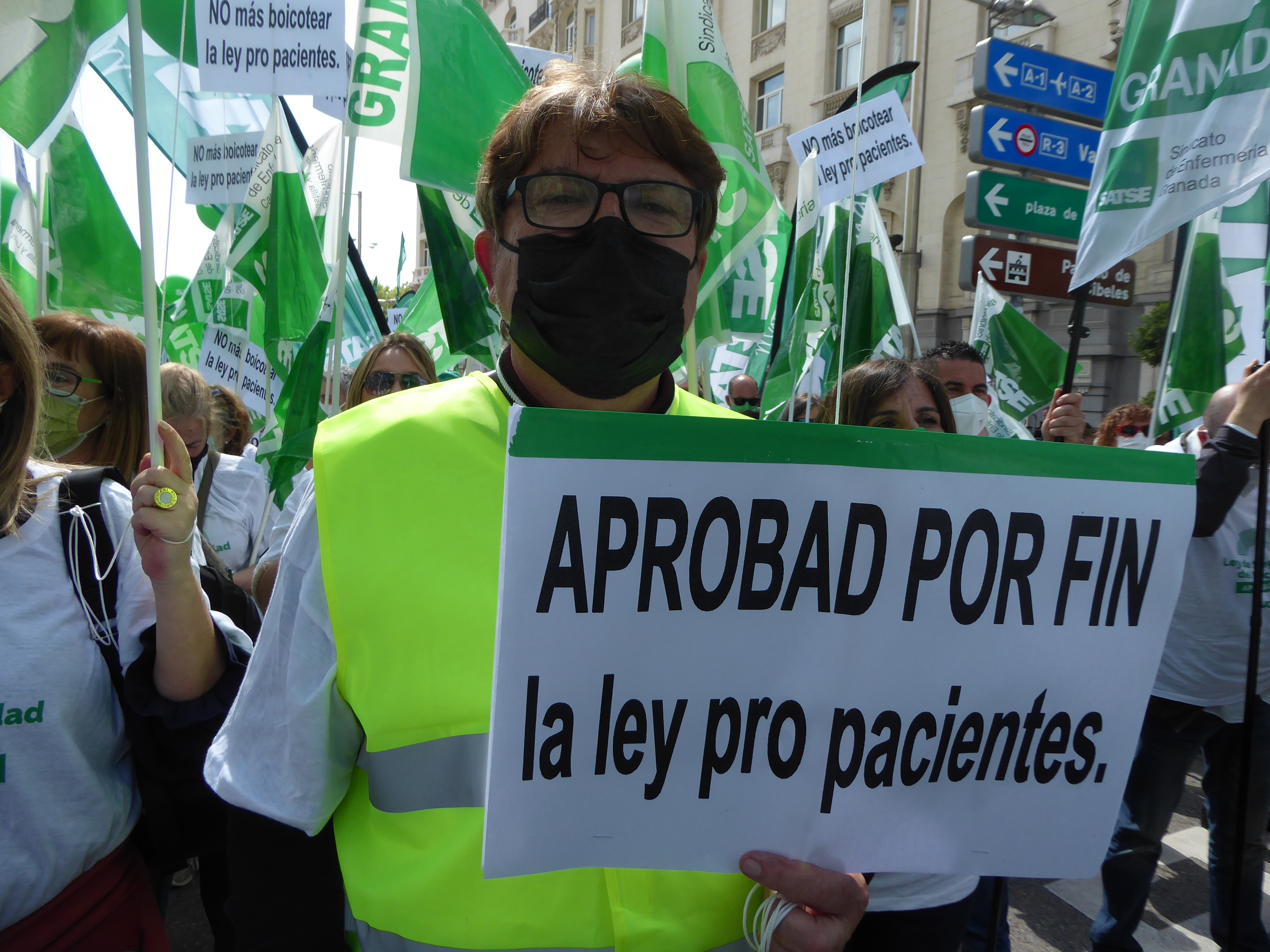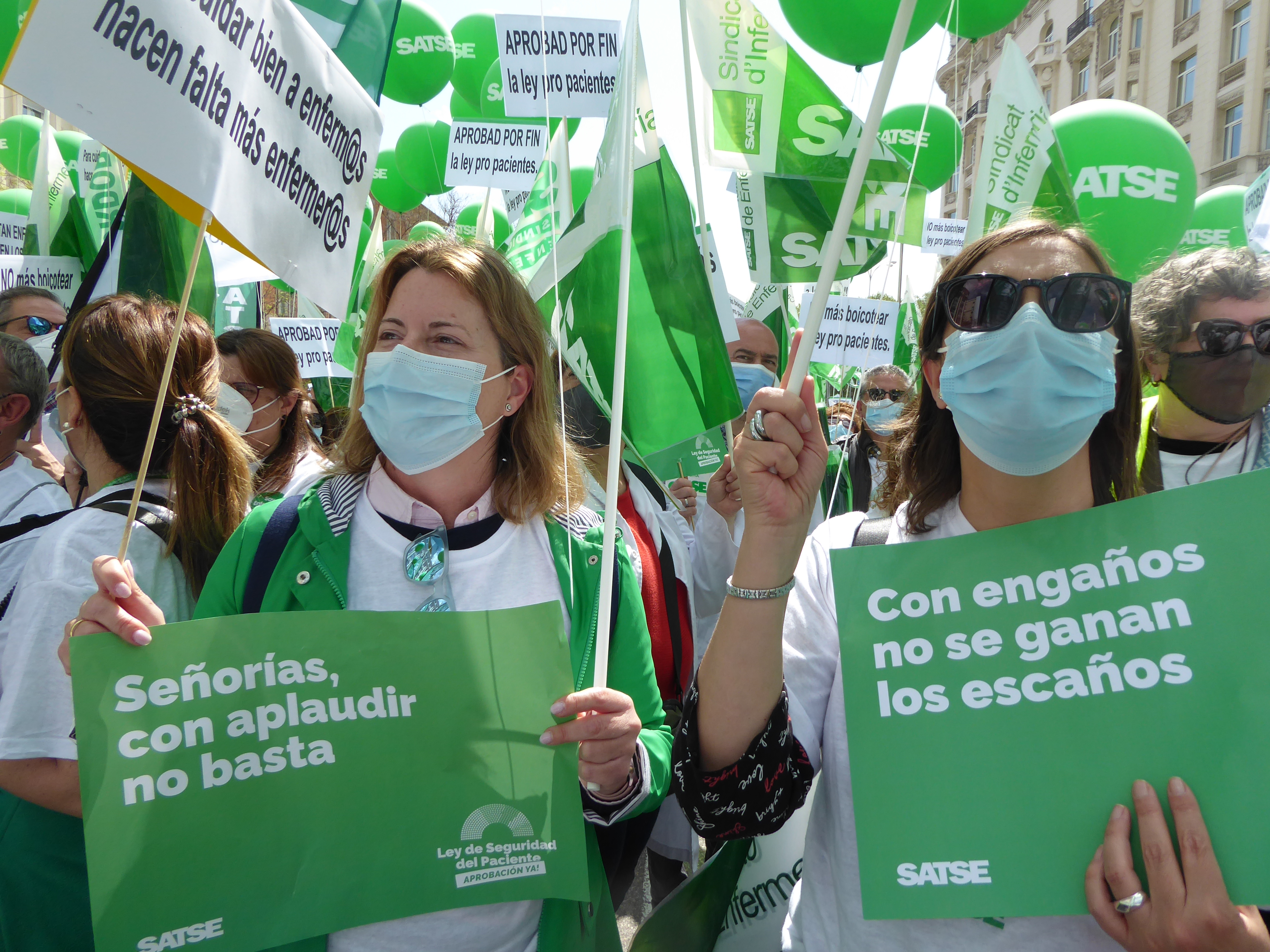 Delegados del Sindicato de Enfermería SATSE Murcia acuden a una gran manifestación en Madrid para exigir la aprobación de la Ley de Seguridad del Paciente.