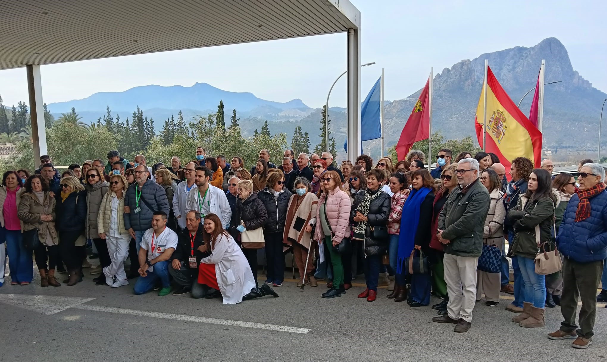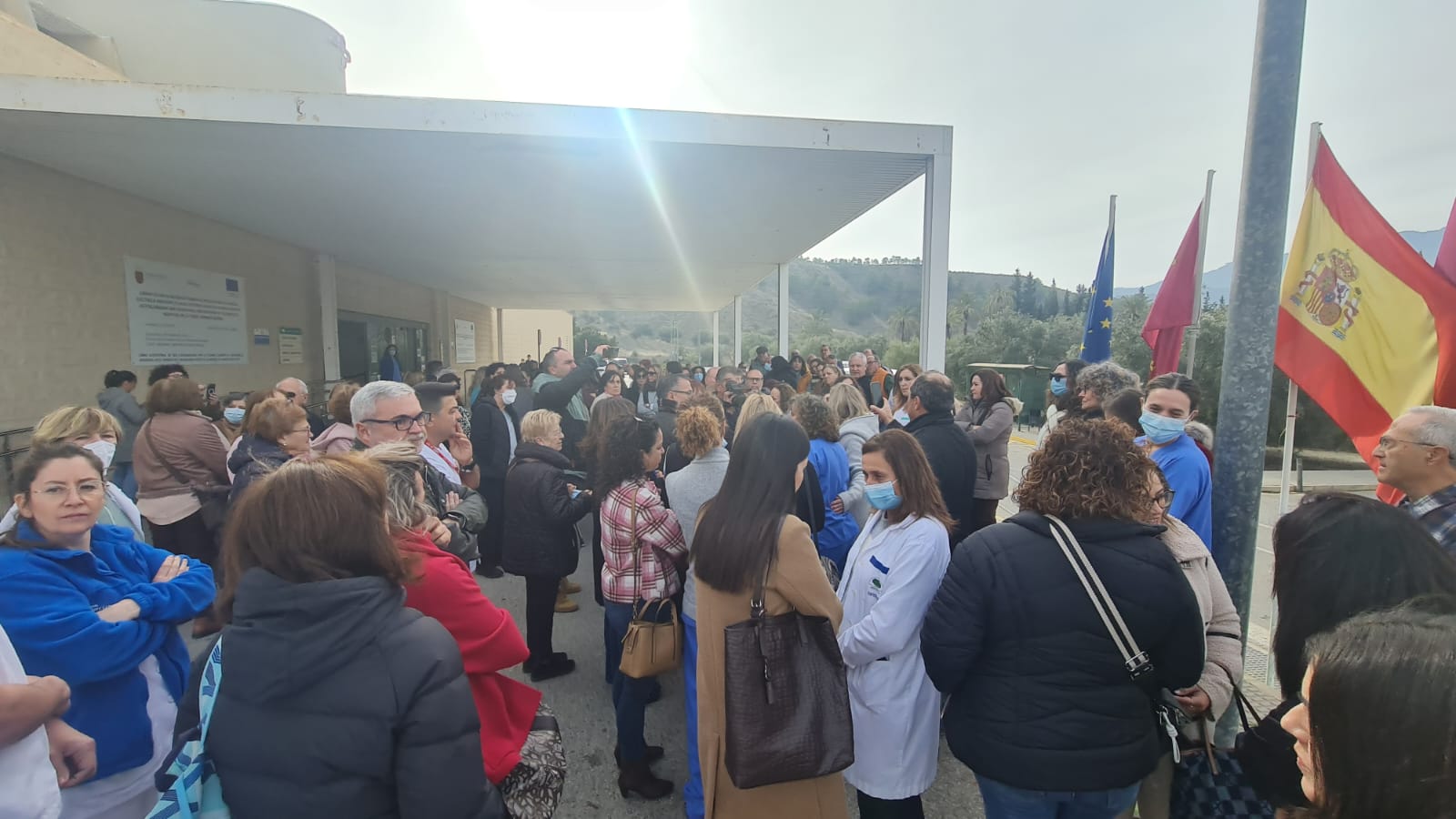 Concentración del personal sanitario del Hospital Lorenzo Guirao de Cieza, con el apoyo de todos los sindicatos, entre ellos, SATSE.