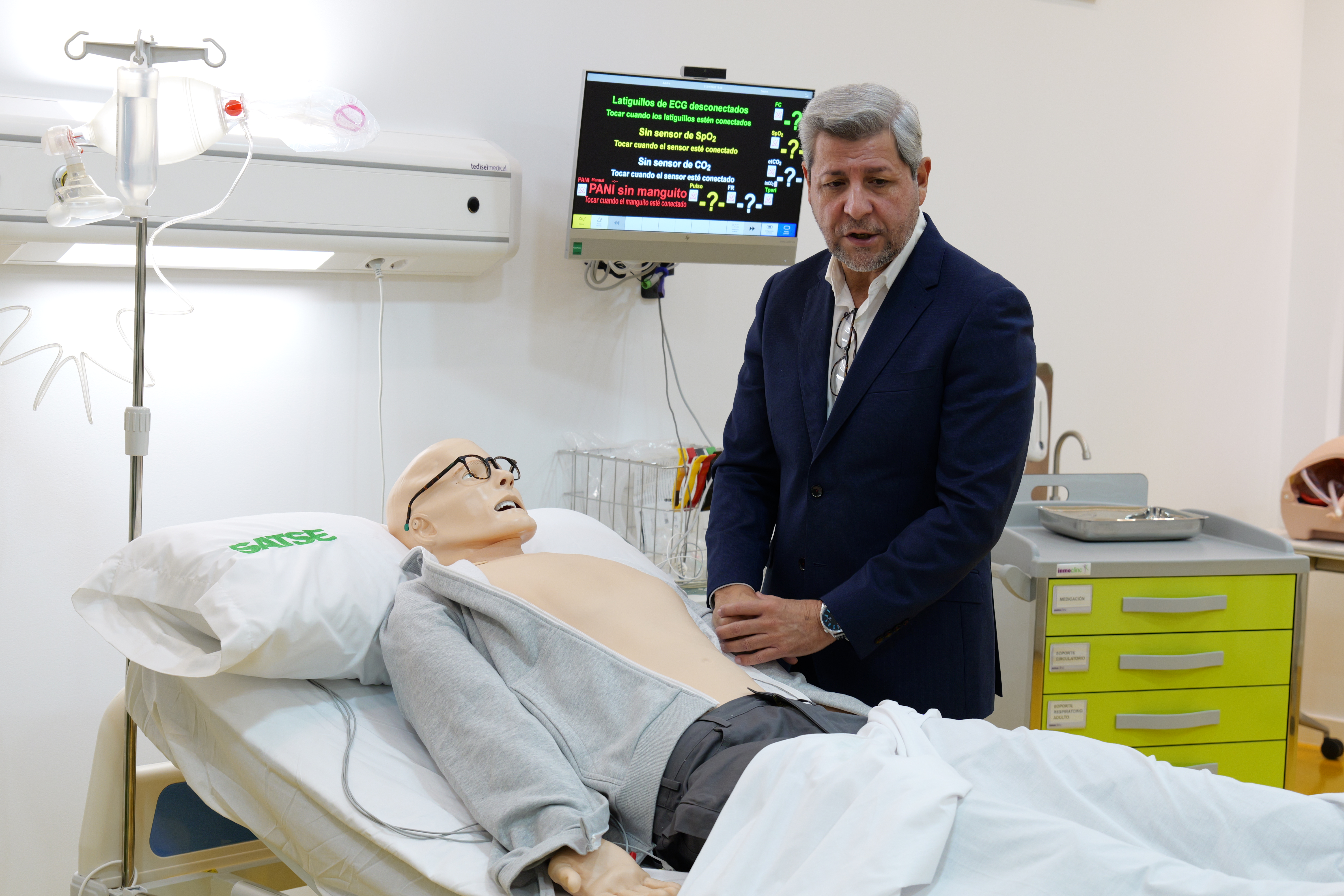 Como elemento destacado de la sala, SATSE Murcia ha incorporado un simulador clínico de alta gama, que permite entrenar técnicas avanzadas como la intubación, la canalización de vías venosas, la colocación de cánulas de traqueostomía o la realización de reanimación cardiopulmonar avanzada.
