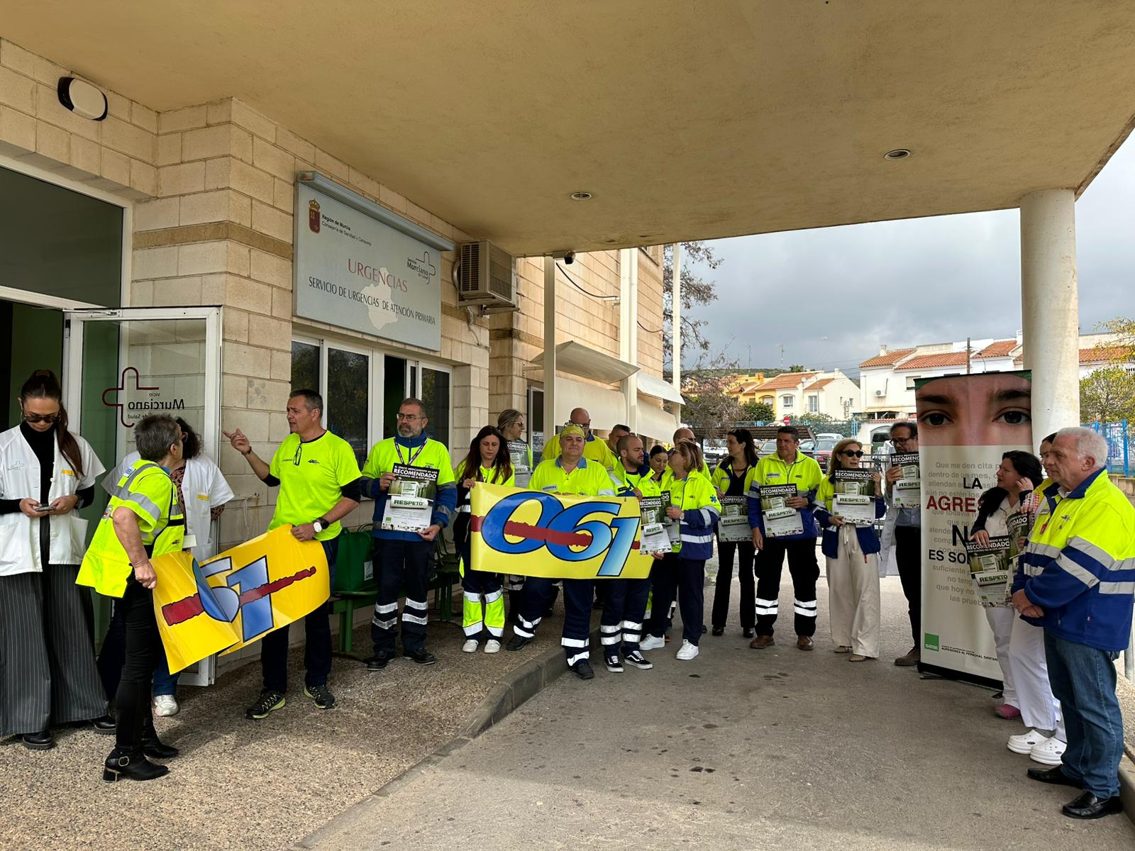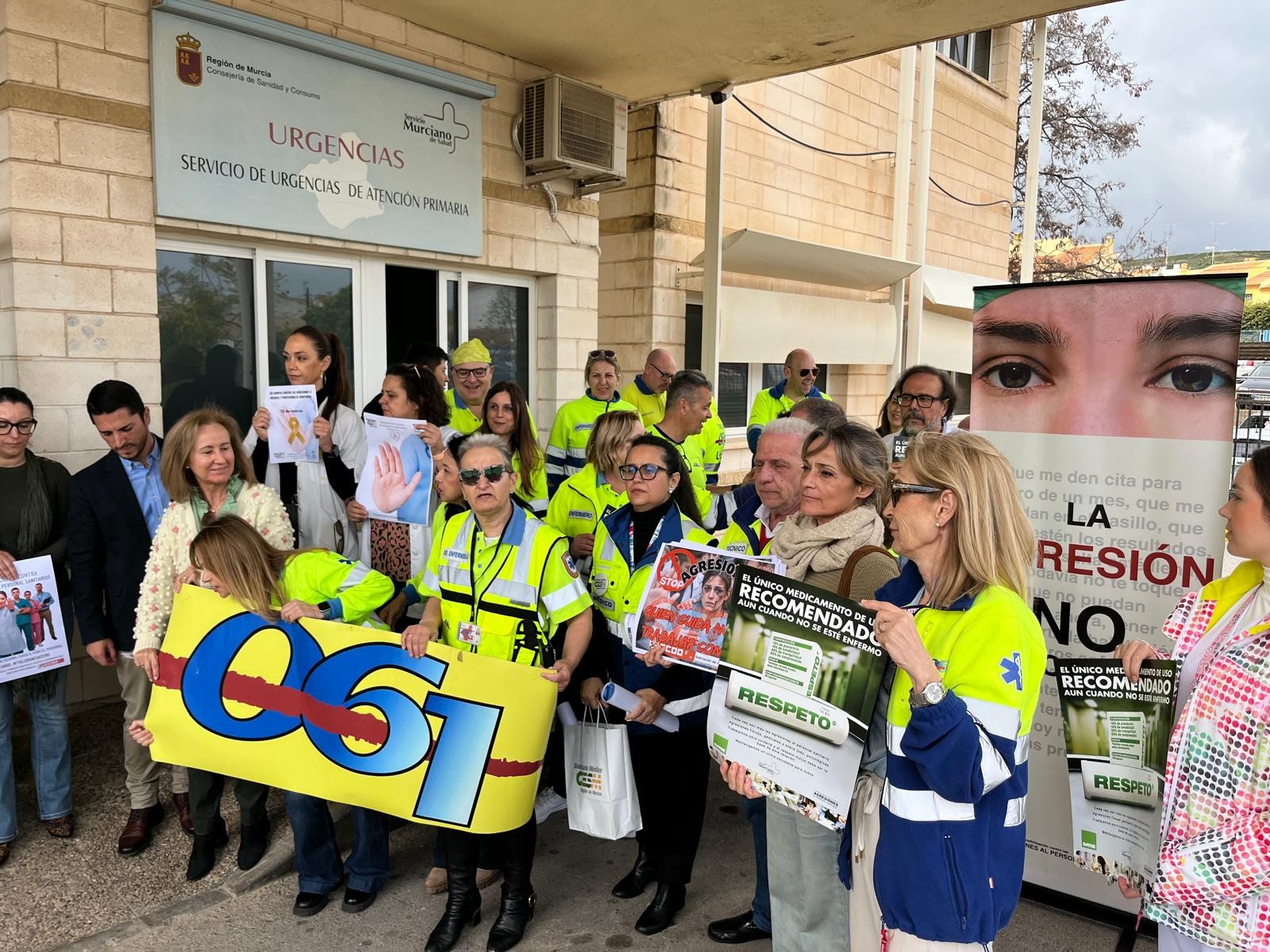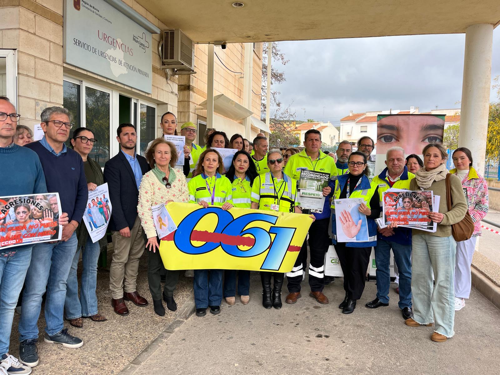Durante la concentración, compañeros del SUAP, profesionales de otros centros sanitarios, representantes sindicales y miembros de la Gerencia del Servicio Murciano de Salud mostraron su apoyo a la profesional agredida y reclamaron medidas que garanticen la seguridad del personal sanitario.